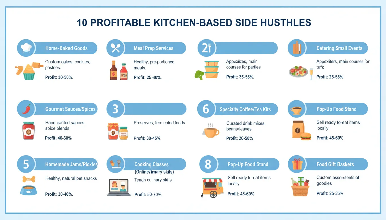 Ready to turn your culinary talents into a thriving side hustle or small business? Here are 10 profitable kitchen project ideas to consider: